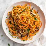 This 20 Minute Creamy Mushroom Sweet Potato Noodles recipe offers a deliciously creamy and savory dish featuring spiralized sweet potatoes tossed in a garlicky mushroom and cream sauce. Perfect for a quick yet fulfilling vegetarian meal, it combines tender sweet potato noodles with sautéed mushrooms, garlic, and Italian seasoning, all enveloped in a luscious creamy sauce and garnished with fresh parsley.