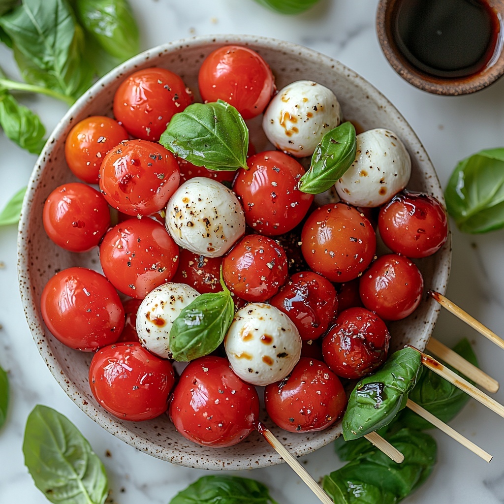 For an extra touch of elegance and flavor, sprinkle some flaky sea salt or freshly cracked black pepper over the skewers just before serving. A few extra fresh basil leaves scattered on the platter not only look lovely but refresh the aroma.