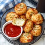 Lightly spray the cheese bites with cooking spray to give them a beautiful golden finish. Arrange them in a single layer in the air fryer basket. Air fry for 5 to 6 minutes, flipping halfway through, until they’re crisp, bubbly, and golden brown.