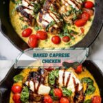 This Baked Caprese Chicken recipe combines tender chicken breasts stuffed with flavorful pesto, seasoned with aromatic herbs, and topped with fresh mozzarella and juicy cherry tomatoes. Finished with a balsamic glaze and fresh basil, it’s a delicious, healthy meal perfect for a quick weeknight dinner or entertaining guests.