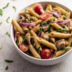 A refreshing and flavorful Balsamic Caprese Pasta Salad that combines al dente penne with fresh mozzarella, ripe grape tomatoes, red onion, and fragrant basil, all tossed in a tangy balsamic vinaigrette. Perfect for a light lunch or a vibrant side dish for any meal.