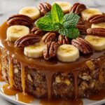 This Banana Pecan Caramel Cake is a moist and flavorful dessert that combines ripe bananas, toasted pecans, and a rich homemade caramel sauce layered with creamy buttercream frosting. Perfect for celebrations or a special treat, this cake brings together warm spices and luscious textures in every bite.