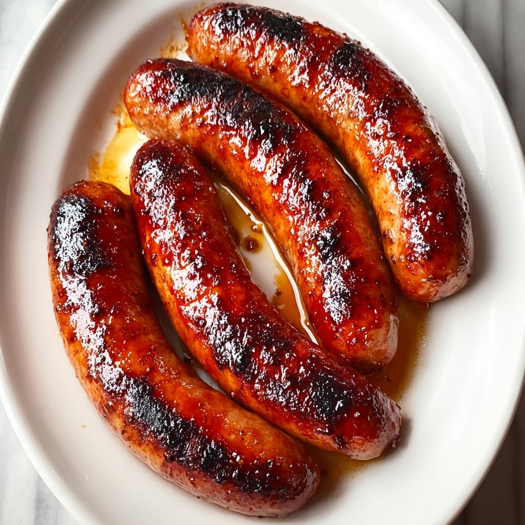 Serve these sausages alongside creamy mashed potatoes, buttery corn on the cob, or a tangy coleslaw for contrast. The creamy and crisp textures balance the sticky and savory sausages perfectly.