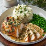 This Boursin Chicken Recipe pairs wonderfully with creamy mashed potatoes, fluffy rice, or tender pasta that will soak up every drop of the sauce. Roasted vegetables like asparagus, broccoli, or carrots add texture and color, making your meal balanced and visually appealing.