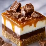 Delight in these rich and creamy Butterfinger Caramel Cheesecake Bars, featuring a buttery graham cracker crust, luscious cheesecake filling, a drizzle of sweet caramel sauce, and a crunchy topping of crushed Butterfinger bars. Perfect for a decadent dessert that combines smooth, sweet, and crunchy textures in every bite.