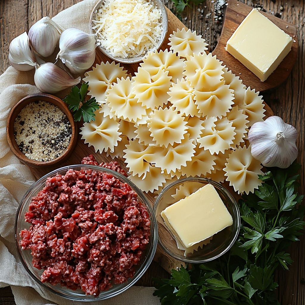 - 12 oz bowtie pasta: The perfect shape for holding onto the creamy sauce and bits of spiced beef in every bite.