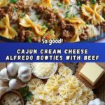A rich and flavorful Cajun Cream Cheese Alfredo Bowties recipe featuring spiced ground beef simmered in a creamy sauce with cream cheese, heavy cream, and Parmesan cheese for a comforting and satisfying meal.