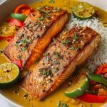 This Caribbean Coconut Curry Salmon recipe offers a vibrant and aromatic dish featuring tender salmon fillets cooked in a rich and creamy coconut curry sauce infused with Caribbean spices and fresh vegetables. Perfect for a flavorful, wholesome dinner that brings tropical flair to your table.
