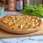 This Cheesy Buffalo Chicken Pizza combines the spicy kick of buffalo sauce with tender chicken, creamy ricotta, and melty mozzarella cheese on a crispy pizza crust. Topped with celery slices and blue cheese crumbles, this pizza offers a flavorful balance of heat, creaminess, and crunch that’s perfect for a delicious homemade meal.