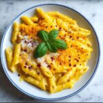 This Cheesy Orange Pasta is a delightful fusion of creamy, cheesy sauce with a refreshing hint of citrus from fresh orange zest and juice. The recipe combines tender pasta with a luscious blend of cheddar and Parmesan cheeses, aromatic garlic, and smooth heavy cream, making it a perfect quick and comforting meal with a unique twist.
