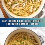 A comforting and easy Chicken and Noodles recipe that combines shredded chicken, egg noodles, and creamy soup in a flavorful chicken broth base. Perfect for a quick weeknight dinner, this dish is hearty, creamy, and packed with tender chicken and peas for a balanced meal.