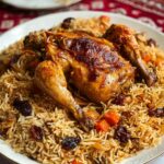 To complete your Chicken Kabsa (Arabian Chicken and Rice) Recipe, sprinkle almonds and raisins or sultanas over the top. The nuts add a subtle crunch, while the dried fruits give an unexpected burst of sweetness that complements the savory spice blend perfectly.