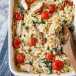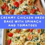 This Chicken Orzo Bake is a comforting, hearty casserole that combines tender chicken, creamy orzo pasta, fresh spinach, and juicy tomatoes, all baked to melty cheesy perfection. It’s an easy all-in-one dish perfect for weeknight dinners or meal prep, delivering balanced flavors with a rich, creamy sauce and fresh herbs.