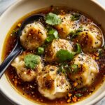 Whisk together soy sauce, rice vinegar, chili crisp, sesame oil, and honey in a small bowl. This sauce balances spice, tang, and a hint of sweetness, making it the perfect companion to the warm dumplings. Adjust ingredients as you like—it’s your perfect dipping experience waiting to happen.