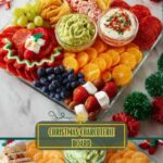 This Christmas Charcuterie Board with Holiday Snacks and Festive Decor Recipe is all about simplicity and balance. Each ingredient plays a role — from the fresh fruits adding juicy sweetness, to the crunchy nuts for texture, and the creamy dips that tie everything together. Here’s what you’ll gather to make this holiday crowd-pleaser: