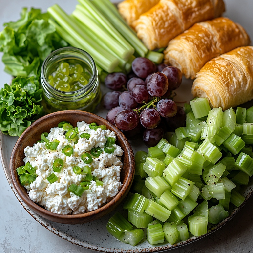 Start by finely chopping the celery, slicing the green onions, and halving the red grapes. Shred your cooked chicken into bite-sized pieces. Taking a moment to prep these fresh ingredients ensures every bite bursts with texture and flavor.
