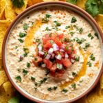 This queso pairs beautifully with classic tortilla chips, but don’t stop there — try it alongside crunchy veggie sticks like carrots, celery, or bell pepper strips for a refreshing crunch. It’s also fantastic dolloped onto baked potatoes or stuffed into warm tortillas.