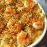 This Crab and Shrimp Casserole is a creamy, savory seafood dish combining lump crabmeat and large shrimp with sautéed vegetables in a rich sauce. Topped with cheddar cheese and crispy breadcrumbs, it bakes to a golden perfection, making it a comforting and elegant meal perfect for family dinners or special occasions.