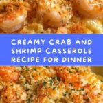 This Crab and Shrimp Casserole is a creamy, savory seafood dish combining lump crabmeat and large shrimp with sautéed vegetables in a rich sauce. Topped with cheddar cheese and crispy breadcrumbs, it bakes to a golden perfection, making it a comforting and elegant meal perfect for family dinners or special occasions.