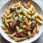 This Creamy Garlic Beef Pasta is a comforting and flavorful dish featuring tender beef strips cooked in a rich, garlicky cream sauce with a touch of Italian seasoning, tossed with perfectly cooked pasta and finished with Parmesan cheese and fresh parsley. It’s a quick and satisfying meal perfect for weeknights.