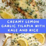 For a dinner party, arrange the tilapia fillets elegantly on a large platter with the kale and lemon slices artistically placed on top. Drizzle extra sauce over the fillets and garnish with edible flowers or microgreens for a restaurant-worthy presentation. Individual portions served in shallow bowls with rice in the center and sauce ladled around create a cozy, inviting meal that invites everyone to dive right in.