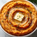 This creamy mashed sweet potatoes recipe is a comforting and flavorful side dish perfect for any meal. Made with tender boiled sweet potatoes, buttery richness, and smooth milk, it’s seasoned simply with salt, pepper, and fresh herbs for a deliciously velvety texture and fresh finish.