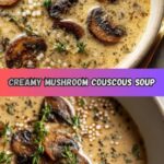 This Creamy Mushroom & Pearl Couscous Soup is a comforting and hearty vegetarian soup featuring tender cremini mushrooms, chewy pearl couscous, and a rich, creamy broth enriched with butter and cream. Infused with savory herbs and a hint of smoked paprika, this soup is perfect for cozy fall days and can easily be made dairy-free with coconut milk.