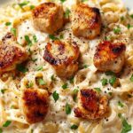 This Creamy Parmesan Pasta with Garlic Butter Chicken Bites is a comforting and flavorful dish featuring tender chicken cubes cooked in garlic butter, paired with pasta coated in a rich and creamy Parmesan sauce. Perfect for a weeknight dinner, this meal combines simple ingredients to create a deliciously satisfying meal that the whole family will love.
