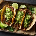 If you want to impress guests or give your family a special treat, present your tacos on a rustic wooden board with small bowls of extra salsa, queso fresco, and pickled onions for toppings. You can also serve the avocado-jalapeño salsa on the side for dipping or as a topping station so everyone can customize their tacos. Wrapping each taco individually in a colorful napkin or parchment paper can make the meal feel festive, fun, and ready-to-go for casual gatherings.