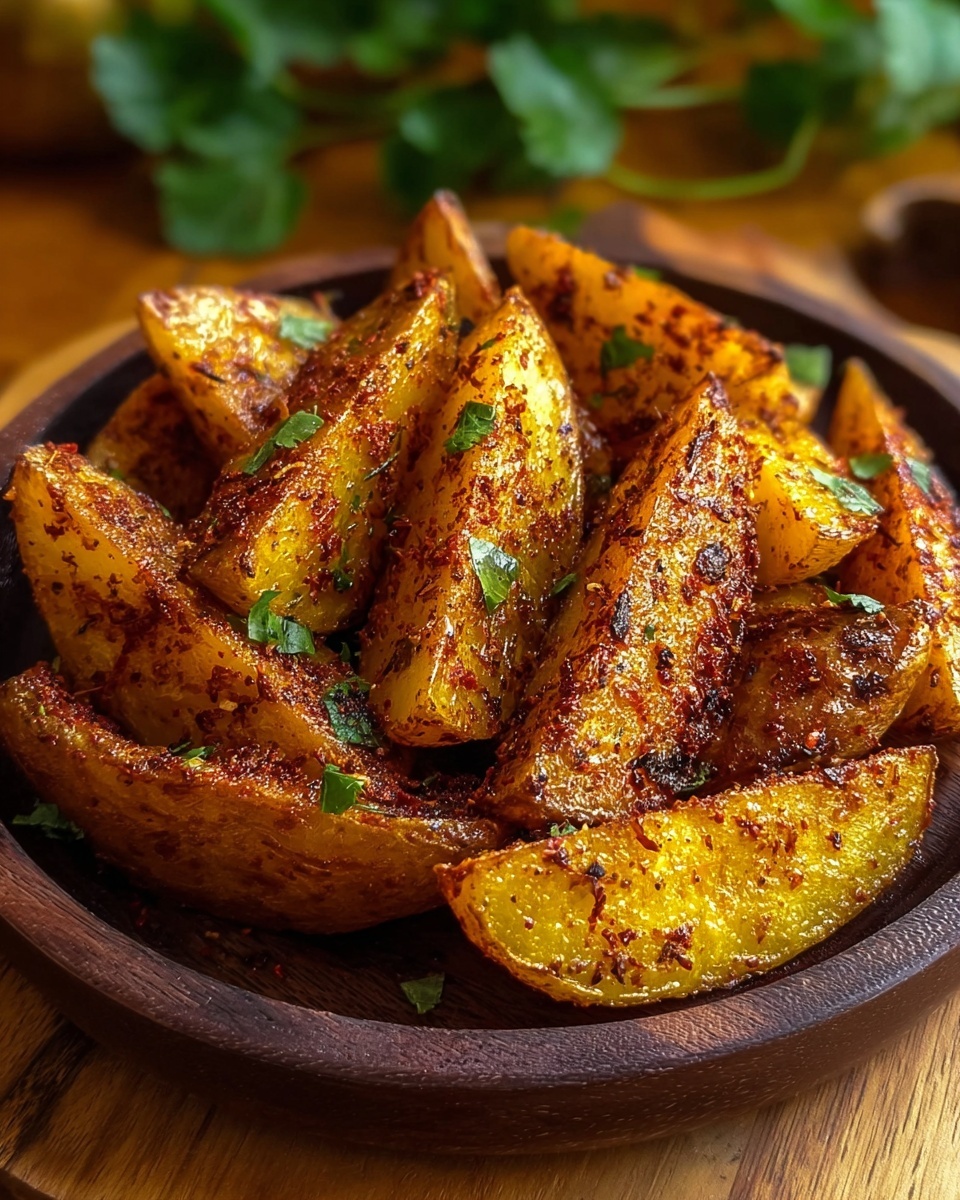How to Serve Crispy Roasted Potato Wedges with Spices and Dipping Sauces Recipe