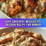 This Crockpot Mississippi Chicken recipe is a flavorful and easy slow cooker dish featuring tender chicken breasts cooked with ranch seasoning, au jus gravy mix, butter, and tangy pepperoncini peppers. Perfect for a hands-off meal that delivers rich, buttery, and tangy flavors with minimal prep.