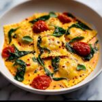 Dreamy Creamy Tuscan Ravioli is a rich and flavorful skillet pasta dish featuring tender cheese ravioli tossed in a luscious sauce made with butter, garlic, sun-dried tomatoes, fresh spinach, heavy cream, and Parmesan cheese. This easy and satisfying meal can be prepared in under 30 minutes, perfect for a cozy weeknight dinner with Italian-inspired flavors.