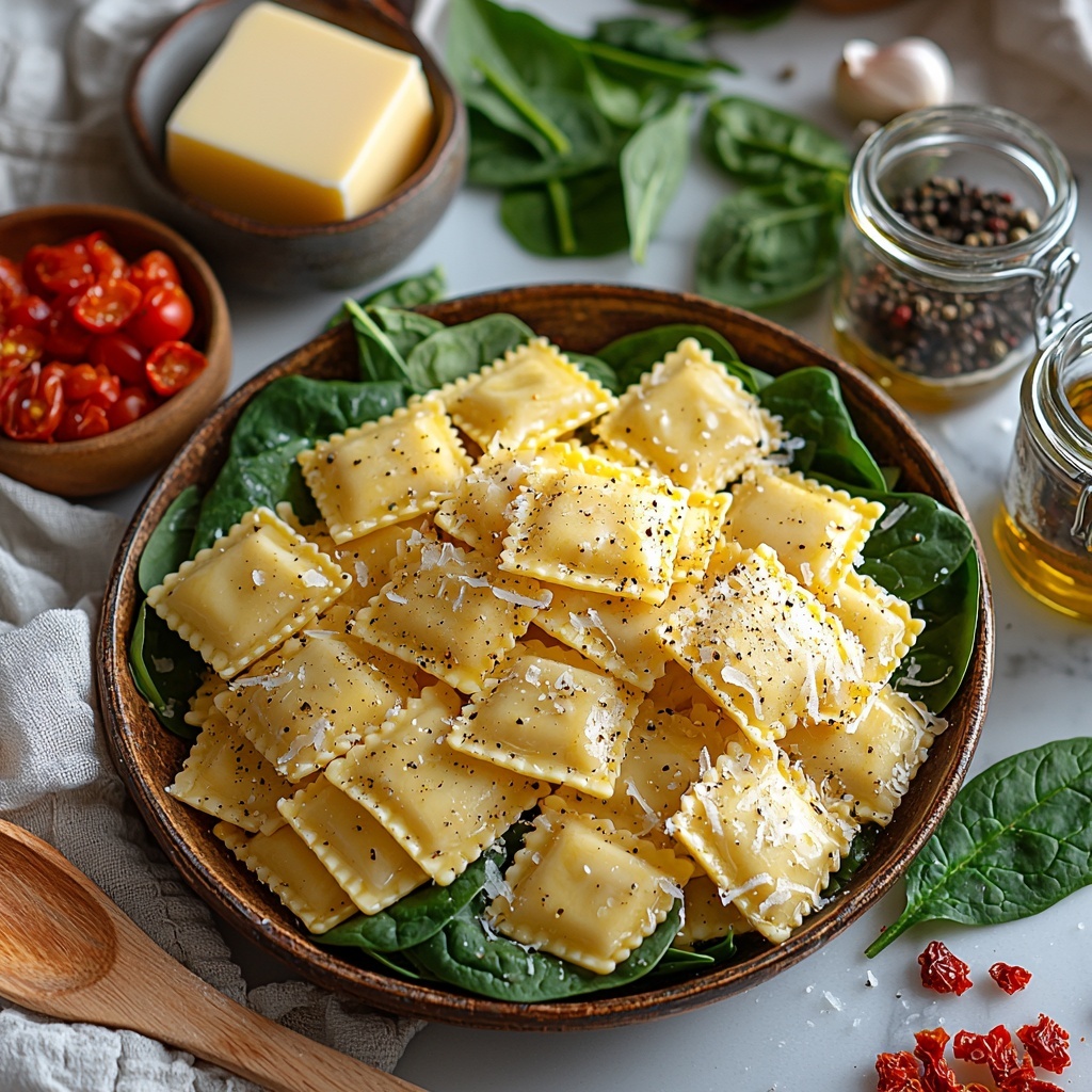 - Serve: Serve the creamy Tuscan ravioli warm, optionally garnished with extra Parmesan cheese and a sprinkle of red pepper flakes for added heat.