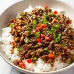 This Easy Beef Bowls recipe features savory ground beef cooked with a flavorful blend of hoisin, soy, sriracha, and fresh ginger, served over fluffy jasmine rice. Topped with crunchy red bell peppers and optional scallions and sesame seeds, this quick and satisfying meal is perfect for weeknight dinners or anytime you want a delicious Asian-inspired bowl.