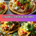 Easy Chicken Tostadas are a quick and flavorful Mexican-inspired meal perfect for weeknight dinners. Tender shredded chicken seasoned with chili powder, cumin, and garlic powder is served on crisp tostada shells layered with warm refried beans, fresh lettuce, cheese, tomatoes, red onion, cilantro, and a drizzle of creamy sour cream. This family-friendly recipe comes together in just 20 minutes and can be customized with guacamole, jalapeños, or hot sauce for extra zest.