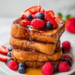 Top your French toast with fresh berries, a light dusting of powdered sugar, or a drizzle of maple syrup for classic charm. Whipped cream or a sprinkle of toasted nuts add texture and decadence, making every forkful a delight.