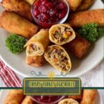Serve immediately, and for an extra special touch, pair these crispy delights with leftover cranberry sauce for a sweet and tangy contrast that complements the savory turkey filling beautifully.