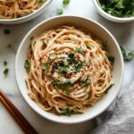 Pour the peanut butter mixture over the drained noodles and toss thoroughly to ensure every strand is coated with the luscious sauce. The sauce will cling beautifully, making each bite irresistibly flavorful.