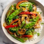 This Easy Vegetable Stir Fry is a quick and vibrant dish packed with colorful veggies tossed in a flavorful homemade sauce. Perfect for a healthy weeknight dinner, it combines crisp-tender broccoli, bell peppers, mushrooms, snow peas, and onions in a savory-sweet glaze with ginger and garlic, served best over rice or noodles.