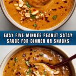 A quick and easy Five-Minute Peanut Satay Sauce that’s creamy, flavorful, and perfect for dipping, dressing, or marinating. This vegan, Asian-inspired sauce blends peanut butter with soy sauce, rice vinegar, and spices to create a versatile condiment that can be made with just a few simple ingredients and no cooking required.
