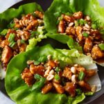 Now the best part—assembling your wraps! Spoon the chicken mixture generously into fresh lettuce leaves, creating a perfect handheld bite. Top with the remaining sliced green onions, chopped cashews or peanuts, and a sprinkle of sesame seeds for that irresistible final crunch and nutty aroma. For an extra burst of flavor, drizzle some of the reserved teriyaki sauce over the wraps, and you’re ready to enjoy!