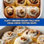 These Fluffy Cinnamon-Walnut Rolls with Cream Cheese Frosting are a delightful breakfast or dessert treat featuring soft, tender dough filled with a sweet cinnamon-sugar and walnut mixture, baked to golden perfection and topped with a rich, creamy frosting.