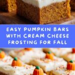 These Frosted Pumpkin Bars are a delicious fall treat perfect for serving a crowd. Moist and flavorful pumpkin cake is topped with creamy cream cheese frosting and decorated with festive fall-themed sprinkles and mini pumpkin candies, making them a seasonal favorite for gatherings and celebrations.