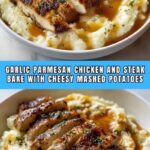 This Garlic Parmesan Chicken & Steak Bake with Cheesy Loaded Mashed Potatoes Recipe has quickly become one of my absolute favorite dishes to make and share. It’s the perfect combo of hearty comfort food with a touch of elegance that turns any meal into a special occasion. I can’t wait for you to try it and savor every creamy, garlicky, cheesy bite just like I do. Happy cooking!