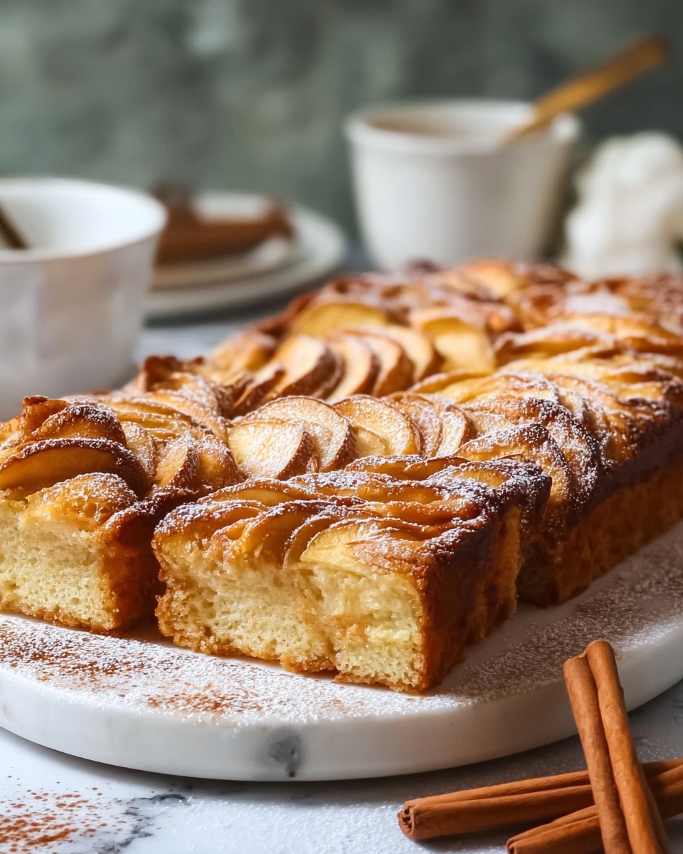 This bread is cut and stacked in small squares layered with a cinnamon sugar mixture, so when baked, it naturally separates into individual pieces that are easy to pull apart, making it perfect for sharing or grabbing single portions.
