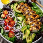Every ingredient in this recipe is chosen to create a harmonious blend of textures and flavors, from the tender grilled chicken to the crisp veggies and the luscious dressing. Using fresh, simple components ensures that each bite is both satisfying and fresh.