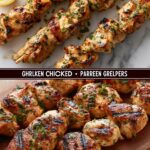5. Grill: Preheat your grill or grill pan to medium-high heat. Grill the skewers for 10–12 minutes, turning occasionally, until the chicken is golden and cooked through (internal temperature should reach 165°F / 74°C).