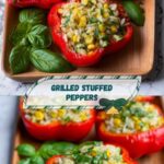 These grilled stuffed peppers shine as a main dish but pair beautifully with a crisp green salad, a side of grilled corn on the cob, or some crusty bread to soak up any juices. If you like, a dollop of tangy Greek yogurt or a sprinkle of vegan cheese can complement the dish perfectly.