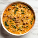 To make a vegetarian version, swap the ground beef for hearty mushrooms or plant-based crumbles, and use vegetable broth instead of beef broth. The rich tomato and cream will still carry the soup beautifully.