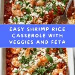 This Healthy Shrimp Rice Casserole with Veggies is a flavorful and nutritious one-dish meal combining tender shrimp, sautéed vegetables, and fluffy rice baked together with tomato sauce and topped with creamy feta cheese. Perfect for a wholesome family dinner, it offers a balanced blend of protein, vegetables, and grains with vibrant Mediterranean-inspired flavors.